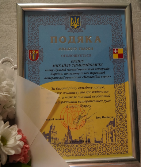 Привітали ювіляра з 95-ти річчям депутати луцької міської ради: заступник луцького міського голови Ірина Чебелюк, директор департаменту соціальної політики Вікторія Майборода, голова правління благодійного фонду Ігоря Палиці «Тільки разом» Катерина Шкльода. З вітальним словом виступив голова Луцької міської організації ветеранів України Валерій Севрюков.