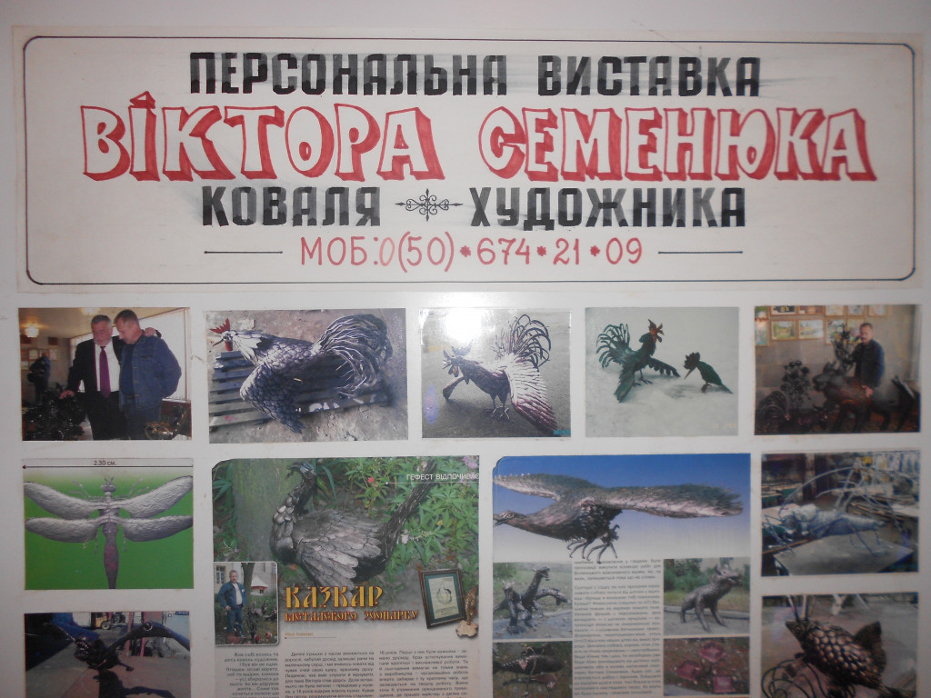 З 23 лютого в Палаці культури представлена персональна виставка кованих скульптур народного умільця,коваля художньої ковки, підприємця – Семенюка Віктора Вікторовича.