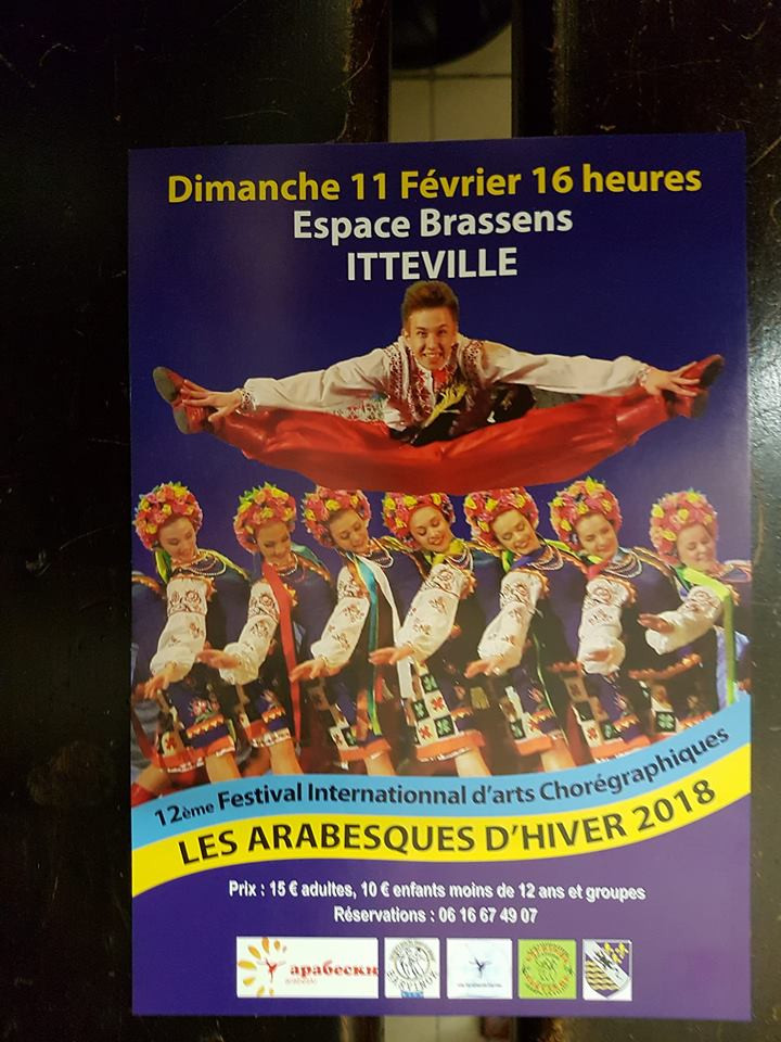 09.02.2018. Xll Міжнародний фестиваль хореографічного мистецтва "Зимові арабески у Франції". Фестивальні виступи. м. Сартрувіль.Зразковий ансамбль танцю "Щасливе дитинство", м. Дніпро. Зразковий ансамбль танцю "Волиняночка", м. Луцьк, ансамбль танцю "Оказу", м. Сартрувіль.